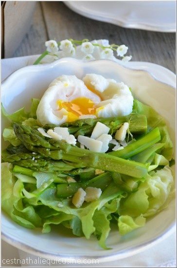 Je les ai préparées simplement avec une sauce vinaigrette et un peu de parmesan, accompagnées d'un oeuf mollet. Une petite entrée bien agréable.